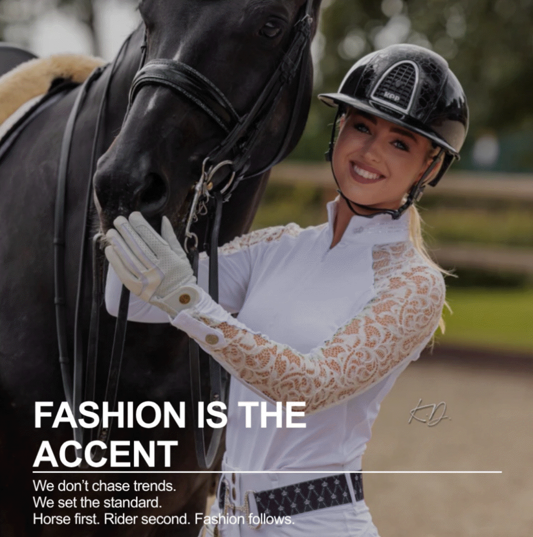 Entdecken Sie die perfekte Verbindung aus Stil und Funktionalität mit unserem Royal Equestrian Turniershirt mit Spitze in Weiß, das speziell für anspruchsvolle Reiterinnen entworfen wurde. Dieses exklusive Turniershirt besticht durch elegante lange Spitzenärmel und einen zarten, herzförmig anmutenden Stehkragen, der Ihrem Turnieroutfit eine besonders edle Note verleiht.